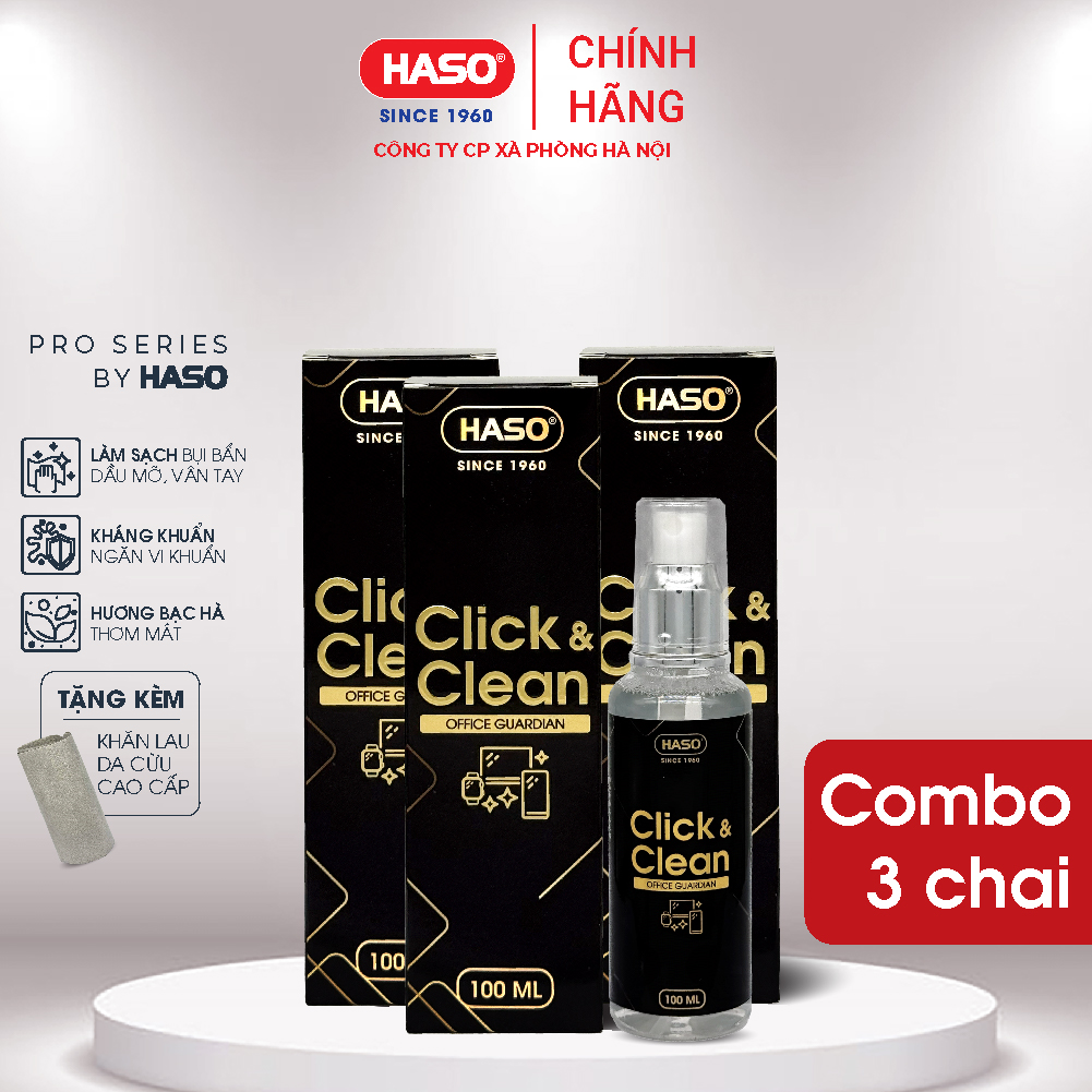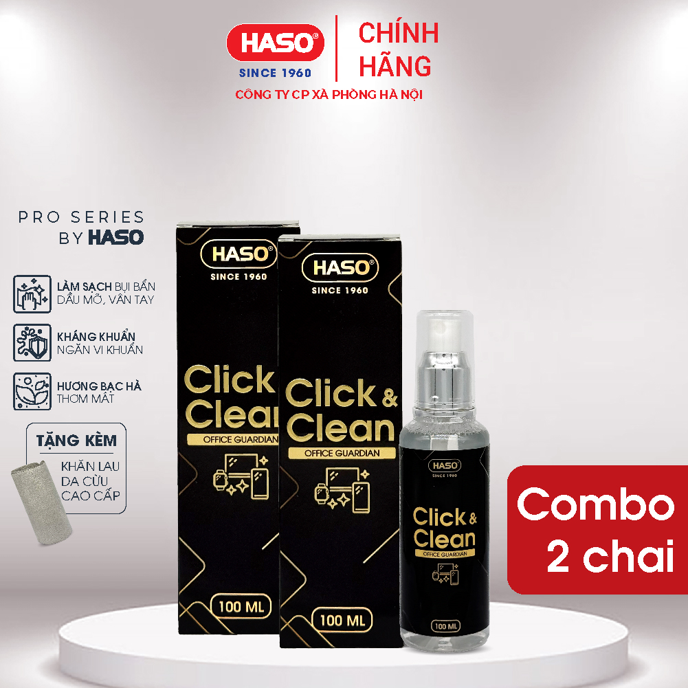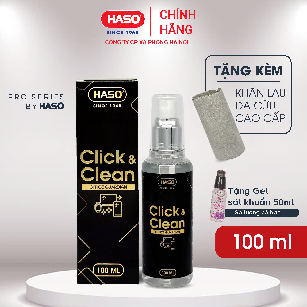 Trong xu hướng làm việc hiện đại, các thiết bị điện tử và không gian văn phòng ngày càng đóng vai trò quan trọng trong đời sống và công việc hằng ngày. Thấu hiểu nhu cầu làm sạch an toàn, hiệu quả và thân thiện với môi trường, Công ty Cổ phần Xà phòng Hà Nội (HASO) chính thức ra mắt sản phẩm vệ sinh văn phòng Click&Clean – dung dịch vệ sinh màn hình và đồ dùng văn phòng ứng dụng công nghệ xanh – sạch từ thiên nhiên, mang đến giải pháp chăm sóc thiết bị toàn diện cho môi trường làm việc hiện đại.