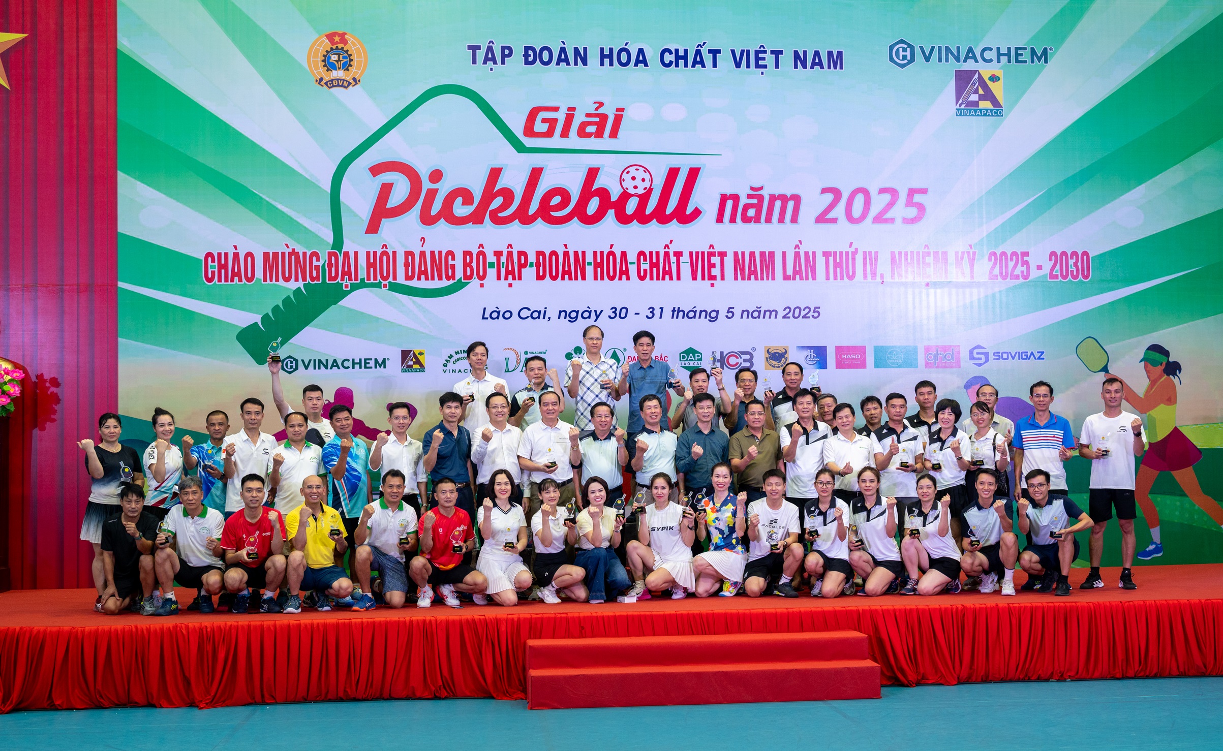 Ngày 31/5/2025, tại Công ty TNHH MTV Apatit Việt Nam, Giải thi đấu Pickleball Tập đoàn Hóa chất Việt Nam năm 2025 đã chính thức bế mạc, khép lại một mùa giải sôi động và thành công tốt đẹp. Sự kiện năm nay quy tụ hơn 150 vận động viên đến từ 14 đơn vị thành viên trực thuộc Tập đoàn, tranh tài tại 6 nội dung thi đấu hấp dẫn.