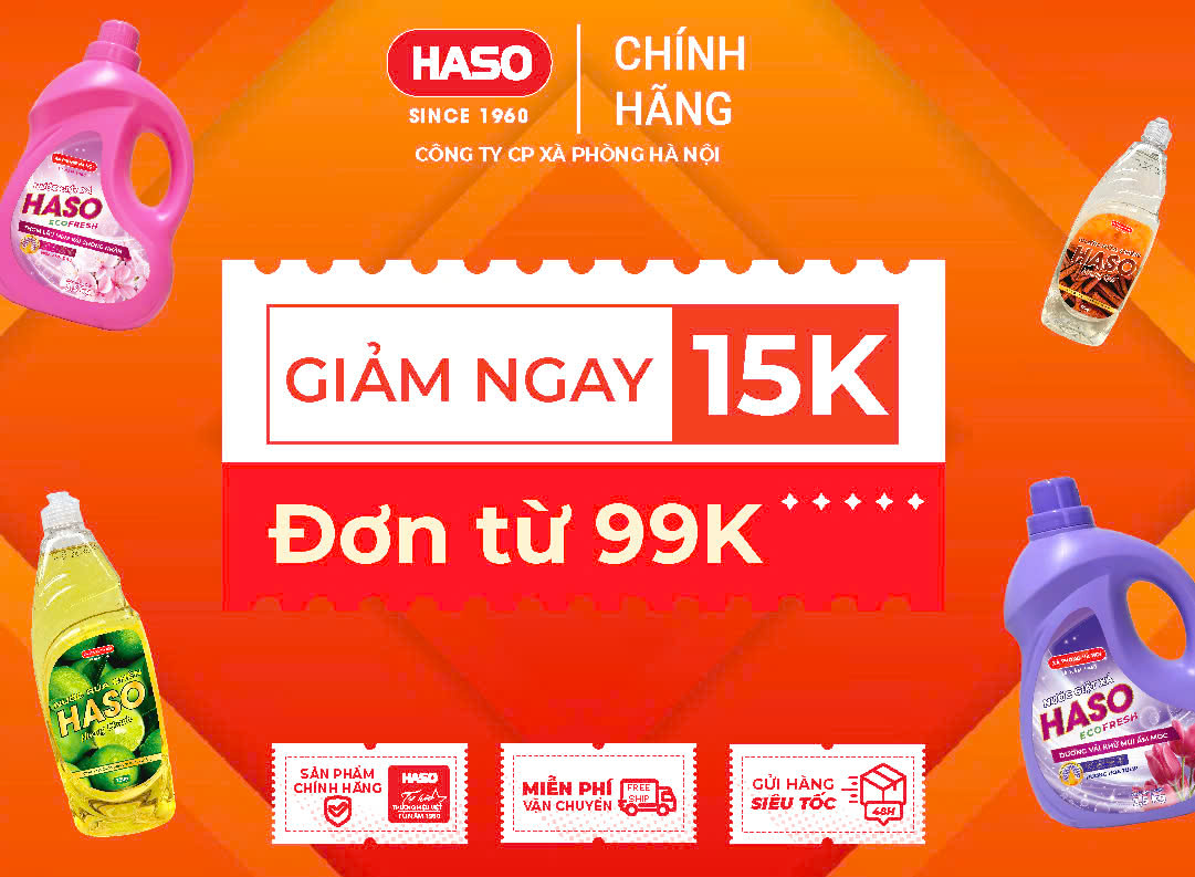Shopee: HASO Official Store – gian hàng chính thức của Công ty Cổ phần Xà phòng Hà Nội.