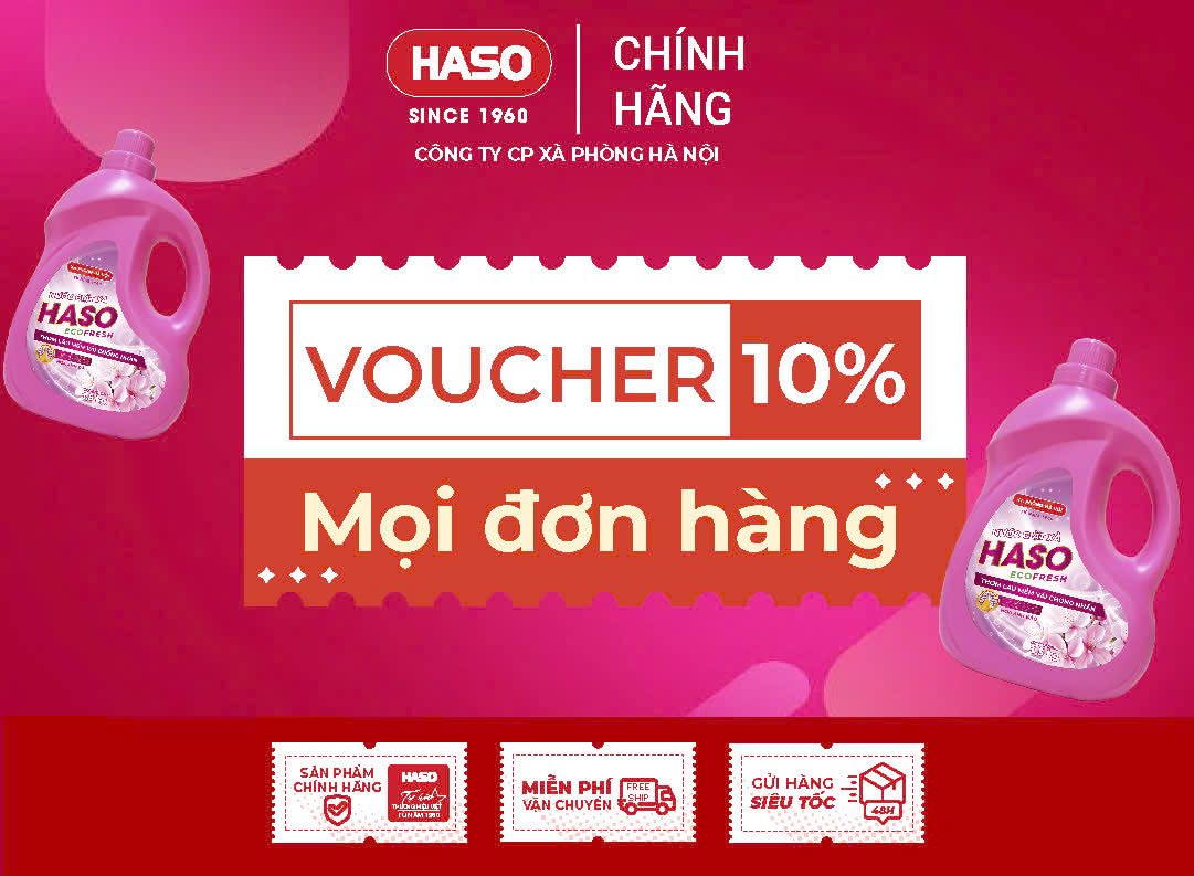 - Giảm ngay 10% cho toàn bộ sản phẩm HASO