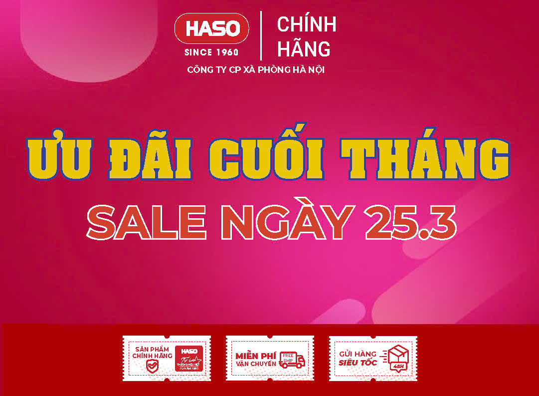 Cuối tháng là thời điểm lý tưởng để bổ sung các sản phẩm thiết yếu cho gia đình. Nhằm mang đến cơ hội mua sắm thuận tiện và tiết kiệm hơn, Công ty Cổ phần Xà phòng Hà Nội (HASO) triển khai chương trình SALE NGÀY 25.03 với nhiều ưu đãi hấp dẫn, áp dụng đồng loạt trên toàn gian hàng.