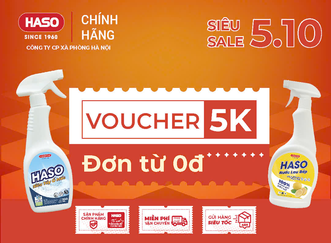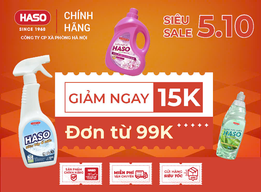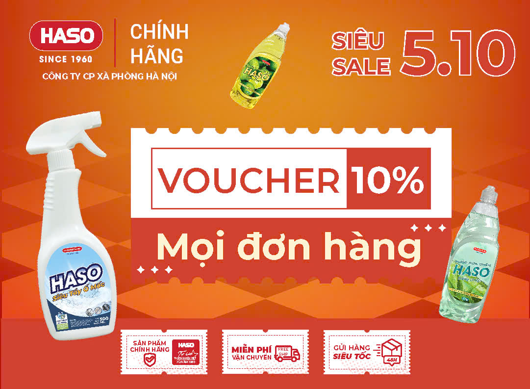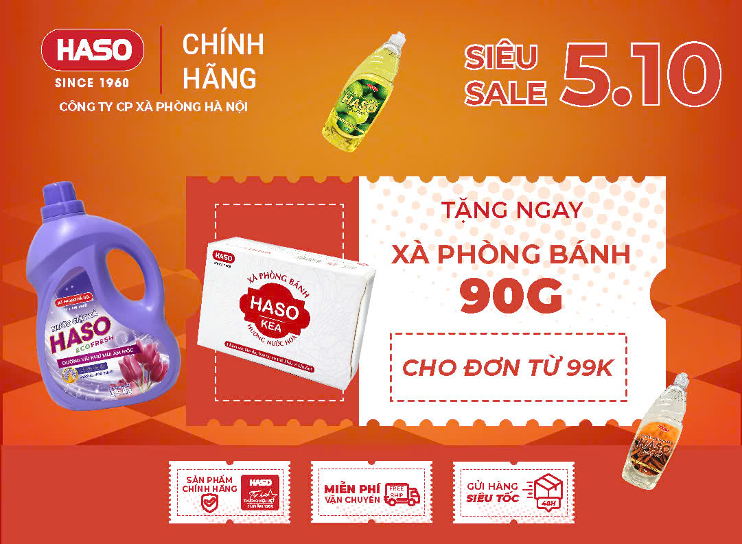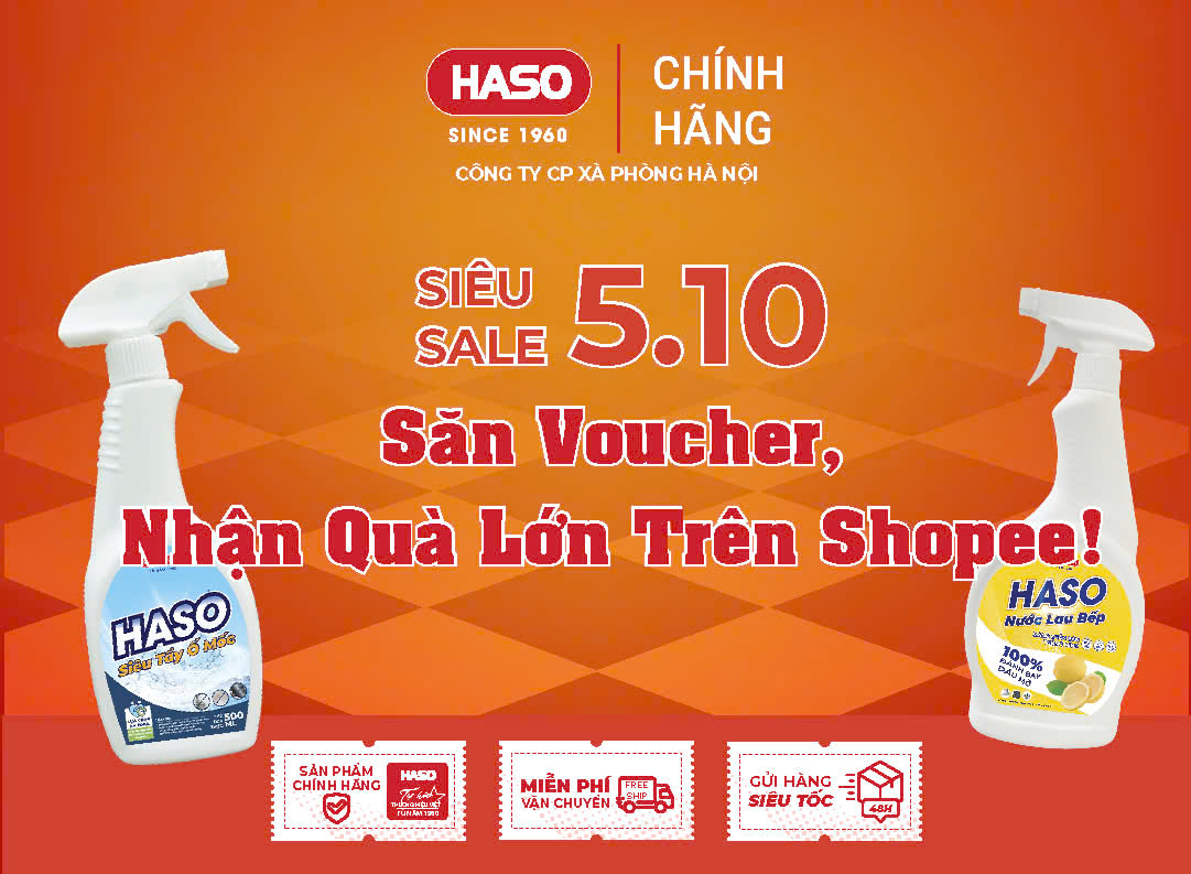Công ty Cổ phần Xà phòng Hà Nội (HASO) tiếp tục mang đến chương trình Siêu Sale 5.10 trên Shopee HASO Official Store, với hàng loạt voucher hấp dẫn, quà tặng thiết thực và deal giá sốc. Đây