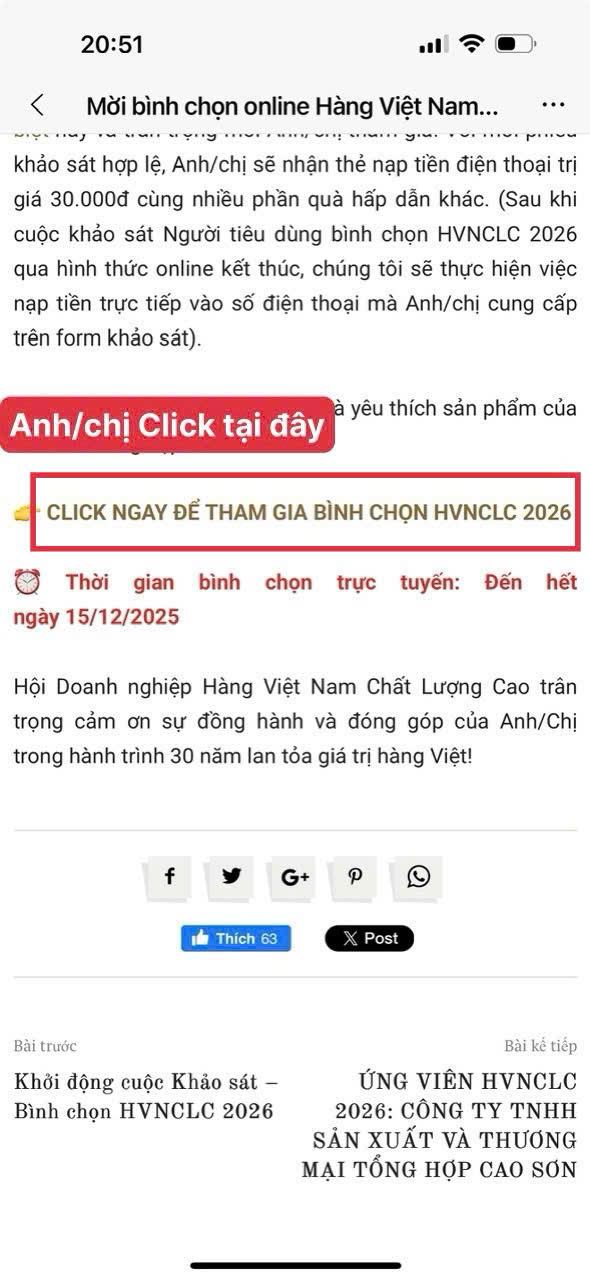 ???? Hãy dành chút thời gian bình chọn cho các sản phẩm Hoá Mỹ Phẩm của Công ty Cổ phần Xà phòng Hà Nội tại: http://hvnclc.vn/khao-sat-binh-chon-hang-viet-nam-chat-luong-cao-2026/
