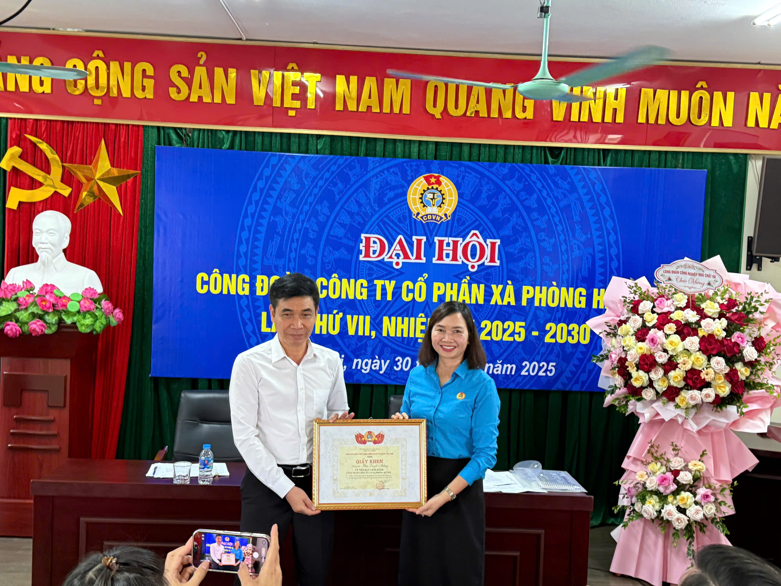Ngày 30 tháng 10 năm 2025, tại trụ sở Công ty, Công đoàn Công ty Cổ phần Xà phòng Hà Nội đã long trọng tổ chức Đại hội Công đoàn khóa VII, nhiệm kỳ 2025 – 2030. Đây là sự kiện chính trị quan trọng của đội ngũ đoàn viên, người lao động trong toàn Công ty – đánh dấu chặng đường mới trong công tác công đoàn, chăm lo đời sống, bảo vệ quyền lợi hợp pháp