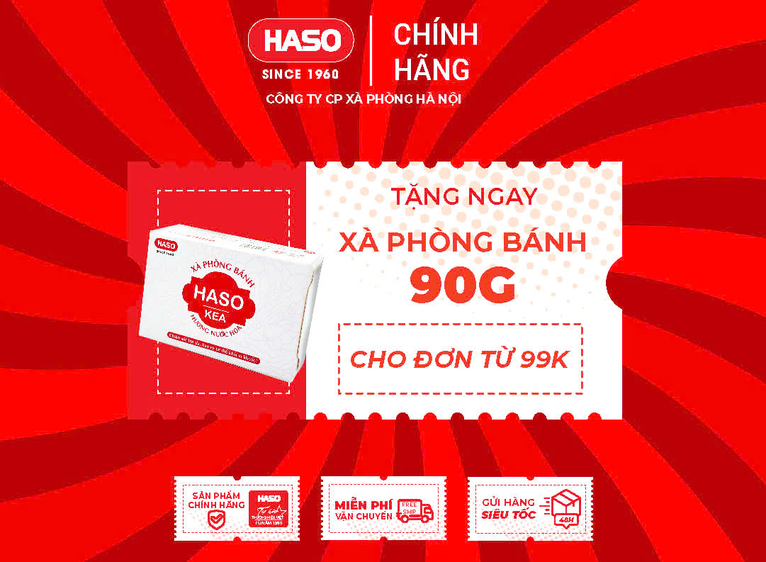 Tặng 01 bánh xà phòng HASO cho đơn hàng từ 99.000 đồng, quà tặng thiết thực, phù hợp sử dụng hằng ngày.